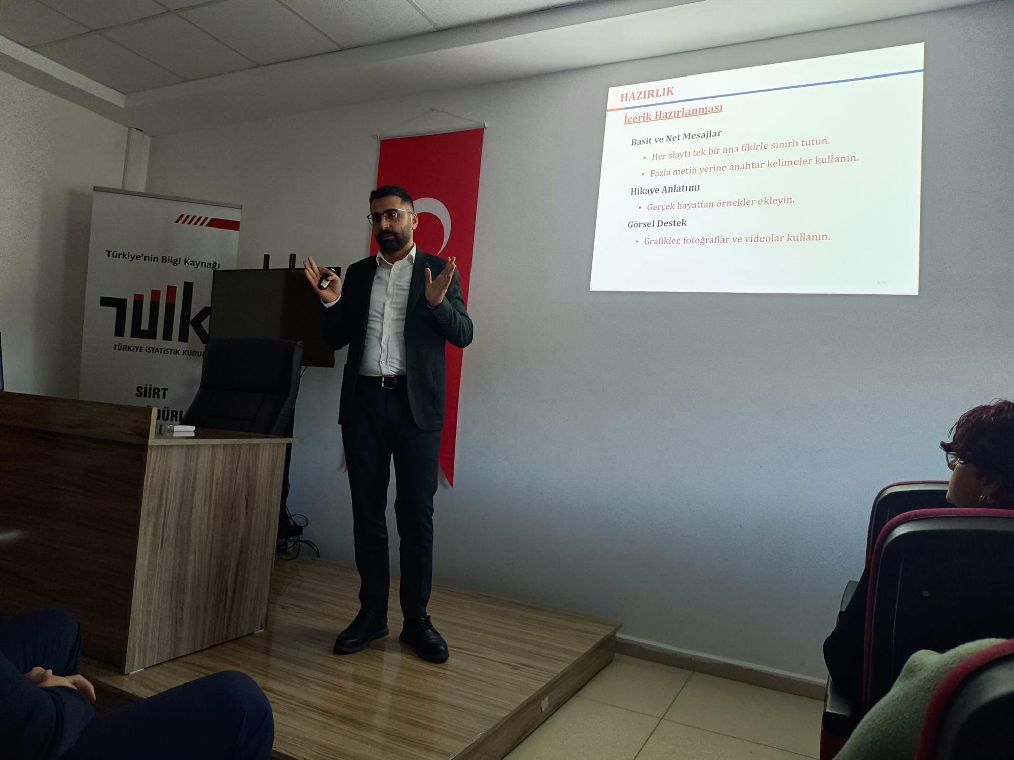 Fakültemiz Bilgisayar Mühendisliği Bölümü öğretim üyesi Doç. Dr. Yahya Doğan ile Makine Mühendisliği Bölümü öğretim üyesi Doç. Dr. Alişan Gönül, TÜİK Siirt Bölge Müdürlüğü personeline yönelik “Yapay Zekâ ve Etkili Sunum Teknikleri” konulu bir eğitim programı gerçekleştirdi.